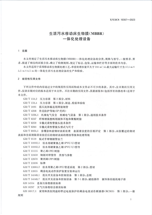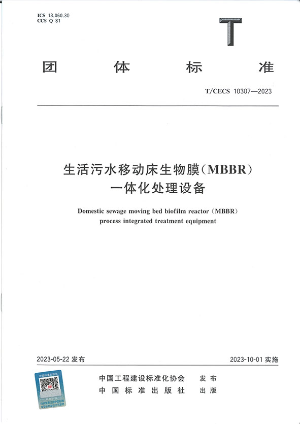 我司參編的生活污水移動床生物膜(MBBR)一體化處理設(shè)備團(tuán)體標(biāo)準(zhǔn)從10月1日開始已經(jīng)正式執(zhí)行!
